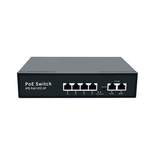 - 6 Ports: Includes 4 POE ports and 2 UpLink ports, all ports up to 10/100Mbps speed. The 2 uplink ports can be connected to different networks or devices, such as routers, NVRs, etc